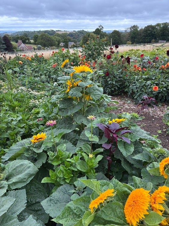 I will end with a note on our cut flower garden, of which I have not mentioned too much in previous posts. It has become more and more of an integral part of the kitchen garden. One benefit it has is that its presence is felt as soon as you walk into the hotel, where you may well see freshly arranged delphiniums or sunflowers in the reception. A reminder that the kitchen garden feeds more than just the plate. Sitting at the far end, it greets you with colour the moment you step through the hedge.